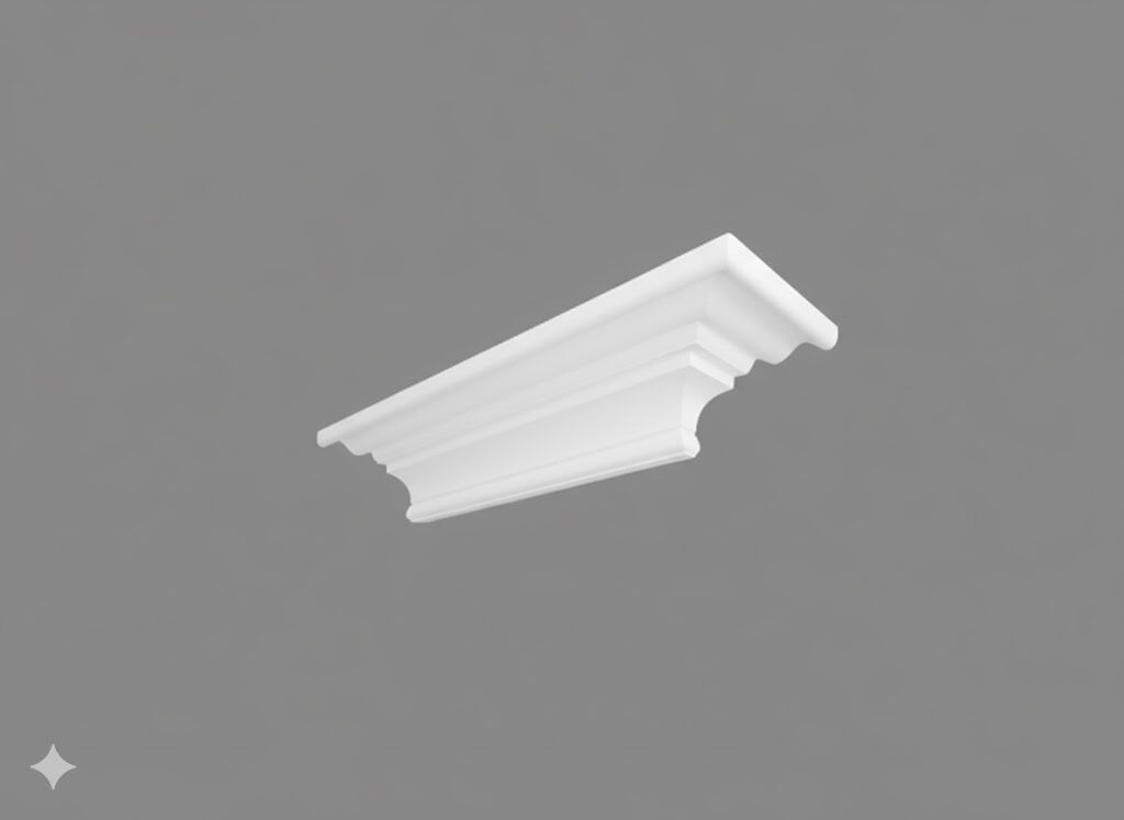 A smooth contoured cornice with a small wall depth ideal for a low ceiling property or room with full height windows . £12.00 per metre