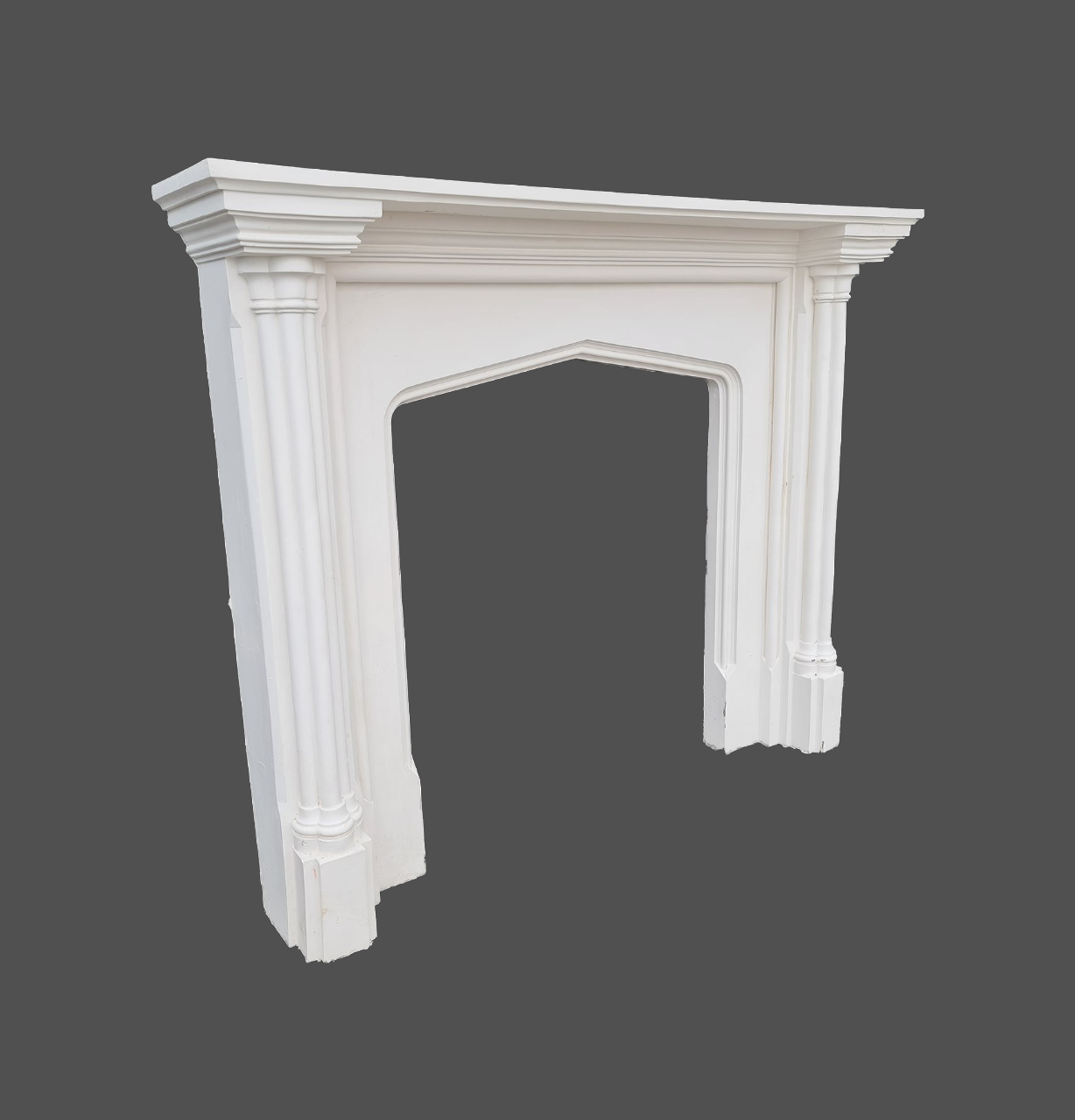 This exquisite, handmade fibrous plaster fire surround is a masterpiece of craftsmanship. Meticulously crafted with intricate details, including fluted columns and an arched opening, this surround is a stunning example of traditional design. Perfect for a period property or a modern home seeking a touch of classic elegance.